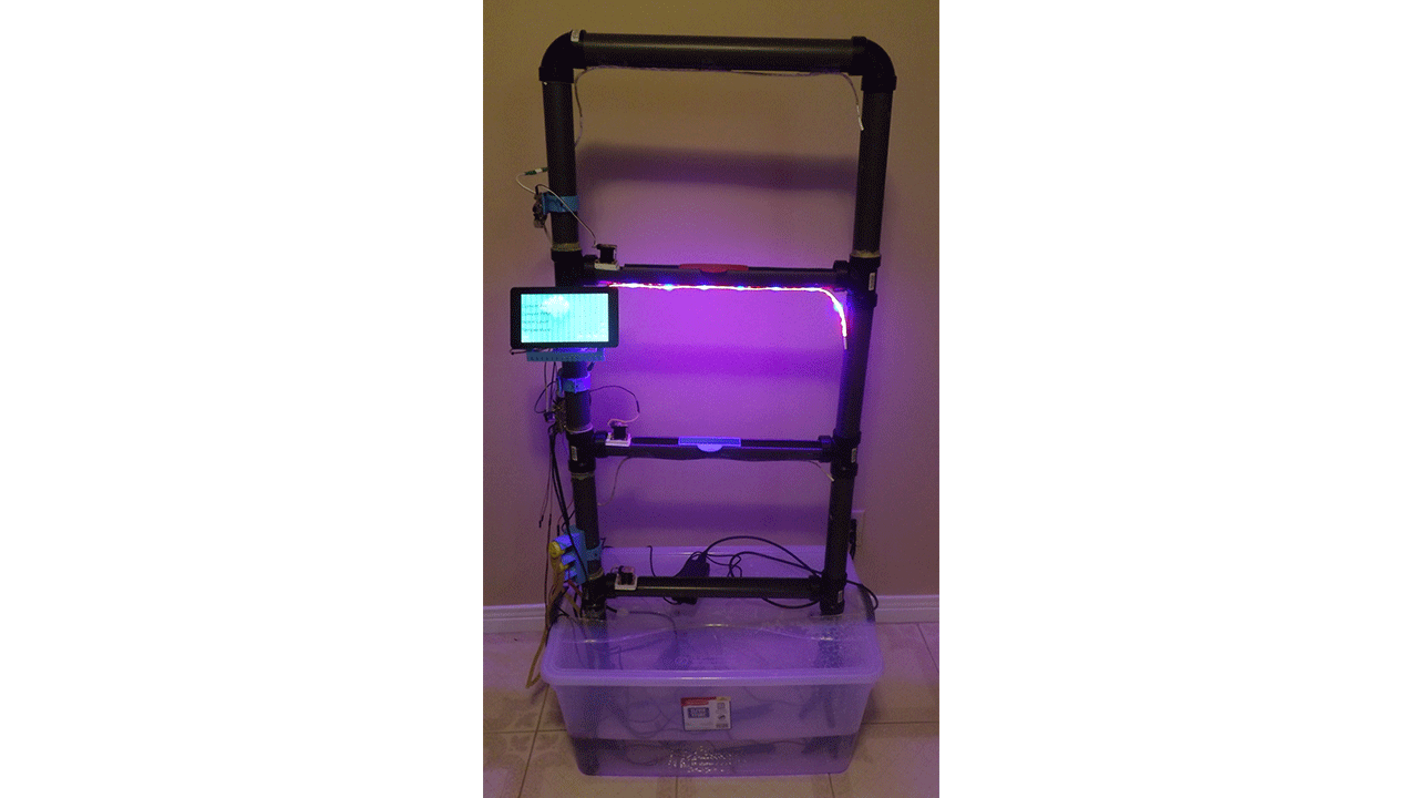 As a final project for the Robotics course at Algonquin, me and a classmate designed and built a fully automated hydroponics system. Utilizing a Raspberry Pi and a couple of Microchip PIC's, the system takes a variety of measurements (pH, PPM, Temperature, Water Level) and displays them to the user on an touch user interface. The system controlls each rail independantly. How much daylight and water each rail gets can be adjusted through the user interface. Through the system settings the user can set a Min/Max pH and a min PPM. If the measured values exceed these ranges parastaltic pumps will add nutrients, pH Up, or pH Down to bring the water resovoir back into the set parameters.